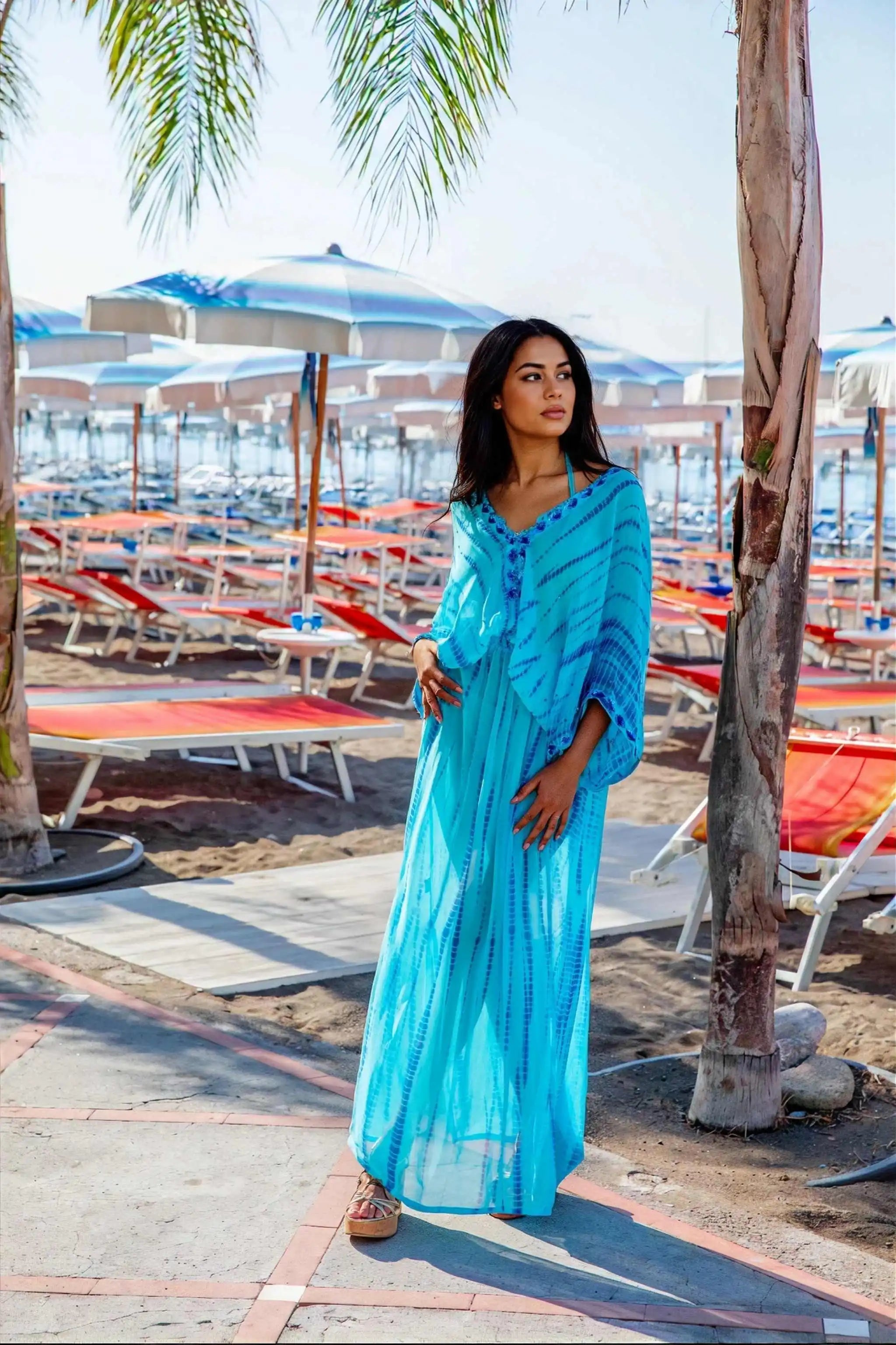 Our tie dye designer kaftans are so beautiful, Lindsey Brown resort wear has turned making tie dye into a luxurious work of art. We have handpicked the best of our tie dye designer kaftans that are perfect to wear in the Maldives or tie dye holiday dresses to wear in Dubai. Cool and floaty in soft cotton and silk, our tie dye pieces are elegant and very on trend.